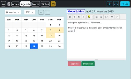 PragmaMémo est une application Web qui permet de mémoriser ses notes via 4 modules : accès (gestion de ses identifiants), agenda, notes par catégories, et listes de tâches. |